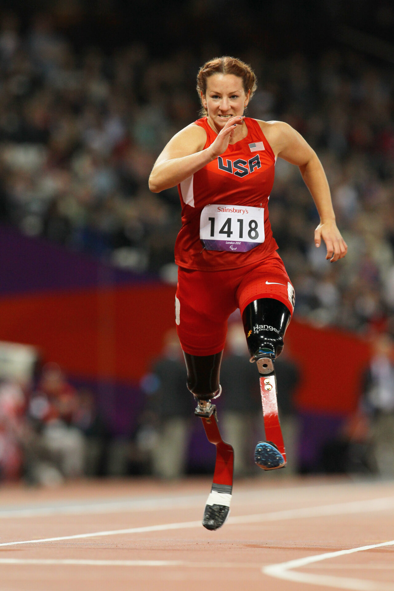Six weeks after learning how to run, Katy competed in her first national event. She went on to represent the United States as a Paralympic athlete for seven years, becoming a four-time U.S. Champion in the 100m. Adding to her list of firsts, she became one of the first bilateral above-knee amputees to compete in the Paralympics on running blades.