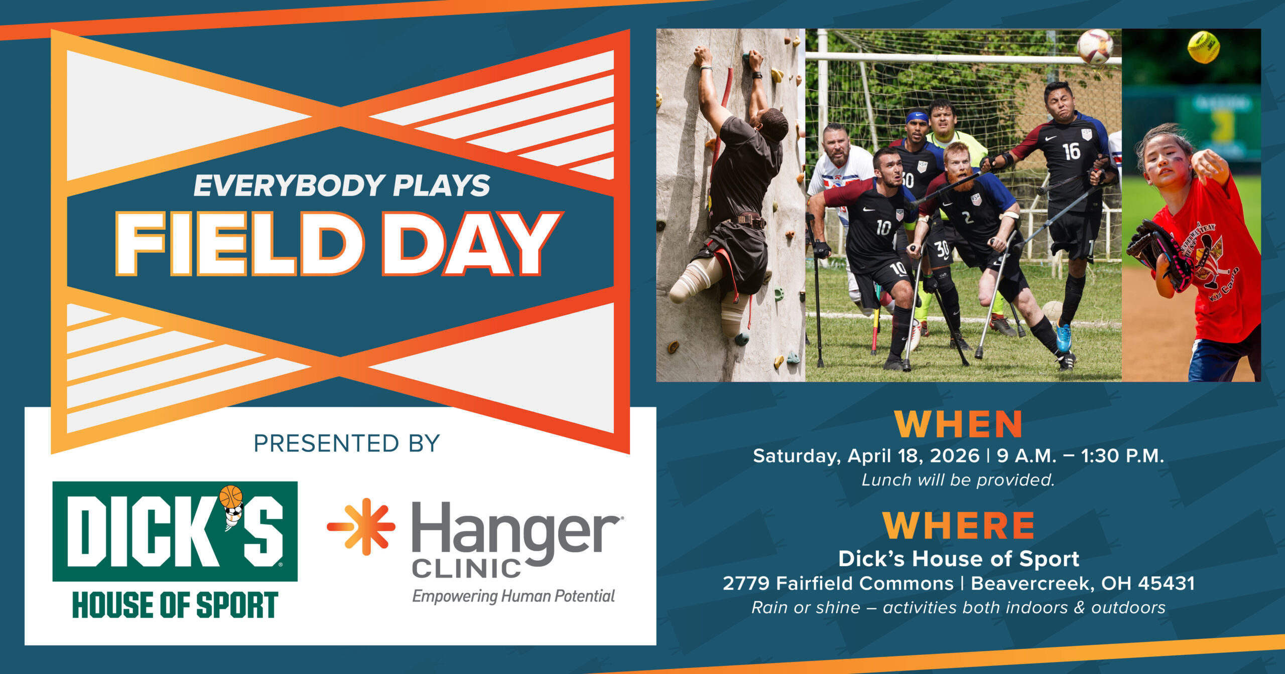 04/18/2026 09:00 AM 04/18/2026 01:30 PM America/New_York DICK’s Sporting Goods & Hanger Clinic Adaptive Field Day 2026 2779 Fairfield Commons, Beavercreek, OH 45431
